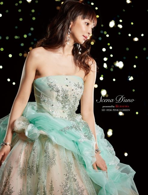色ドレス SD80536 PINK×GREEN